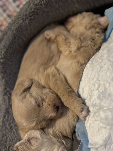 Şirin, balaca oyuncaq ölçülü it balaları – yüngül qızılı/karamel tüklü, qıvırcıq və hipoalerjenik xəz. Kompakt bədən quruluşu, qısa burun, qara düymə kimi burun və iri parlaq gözlər. Ev şəraitinə, ...