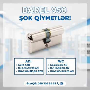 Məhsul: Daxili qapı kilidləri – Safelock/SKY və Akdeniz Safelock/SKY seriyası - Model: Adi (düz dil) - Qutuda 40 ədəd: 92,40 AZN (2,31 AZN/ədəd) - 20 ədəd: 48,60 AZN (2,43 AZN/ədəd) - Tək əd...