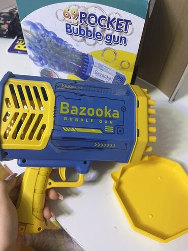 Qutu üzərində: “ROCKET Bubble gun – 69 Holes” və “Bazooka Bubble Gun” yazıları.