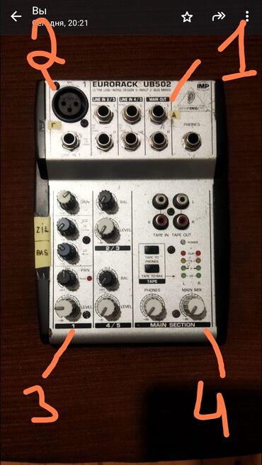 MİKSEL SATİLİR. Butun alətlərə gedir. musiqi mərkəzlərinə də qosub istifadə etmək olar. az islənmisd. mikselin 1 kanalinda custevitelni, treble, bass, panorama, və kanalin xodu movcuddur. Cox gucludur. Qarmon aləti və basqa alqtlər ucun yararludir. adabter basligini keyfiyyətli kabəllə uzatmisam. da əlavə traynikə ehtiyac qalmir. SONU QİYMƏTİ - 130 azn Unvan Xirdalan səhəri 0557013674 Behringer Eurorack UB502 firmasidir
