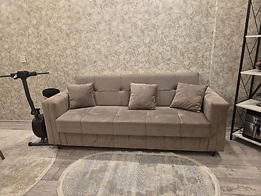 Bej rəngli yumşaq parça üzlü 3 yastıqlı divan