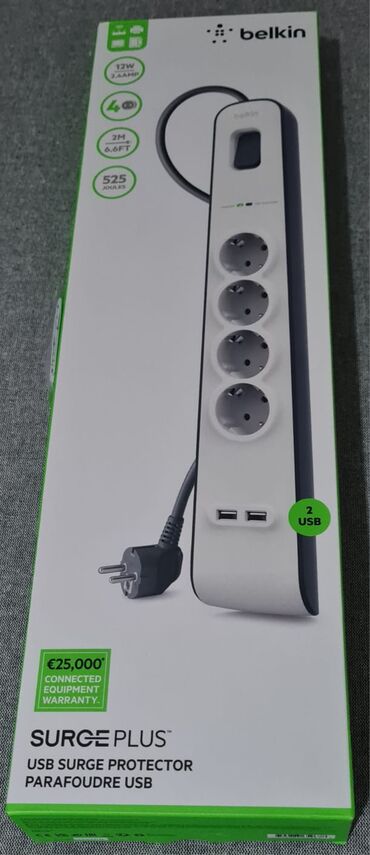 Belkin firmasından oriqinal 2 metrlik şəbəkə filtri. Təzədir, işlənməyib, korobkasındadır. Bahalı texnika üçün ideal qorumadır. Həm 16 A uzadıcı, həm də gərginlik oynamalarından qoruyan filtrdir. ...