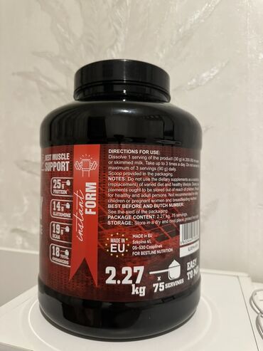 - Qablaşdırma: 2.27 kq toz, təxminən 75 porsiya