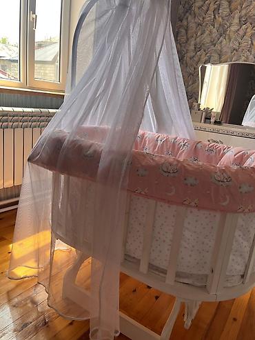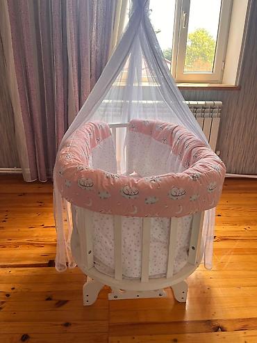 Uşaq beşiyi – yelləncək funksiyalı, ağ rəngdə kombi model. - Qiymət: 90 AZN (təcilidir) - Ünvan: Sumqayıt, MİMİ Xüsusiyyətlər: - Yan tərəfdə komod: 2 çekmece + 1 şkaf bölməsi - Aşağıda geniş 2 alt...