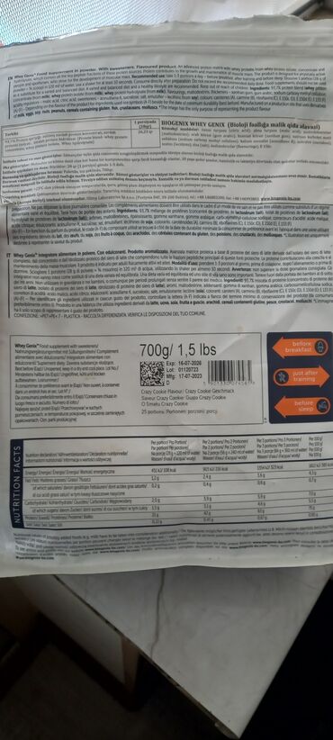Məhsul: Biogenix Whey Genix – Advanced Whey Protein Matrix Dad: Crazy Cookie Xalis çəkisi: 700 g (1,5 lbs) Porsiya sayı: 25 single portions Zülal faizi: 75% protein Xüsusiyyətlər: - Zülalı...Giriş•Qeydiyyat