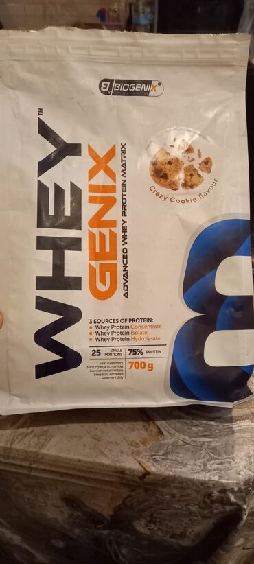 Məhsul: Biogenix Whey Genix – Advanced Whey Protein Matrix Dad: Crazy Cookie flavour Çəki: 700 q (1.5 lbs) Servis sayı: 25 porsiya Zülal faizi: 75% protein Xüsusiyyətlər: - 3 mənbədən züla...