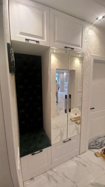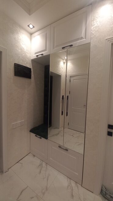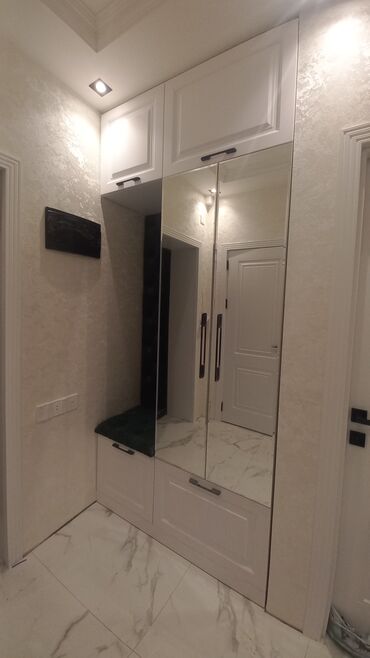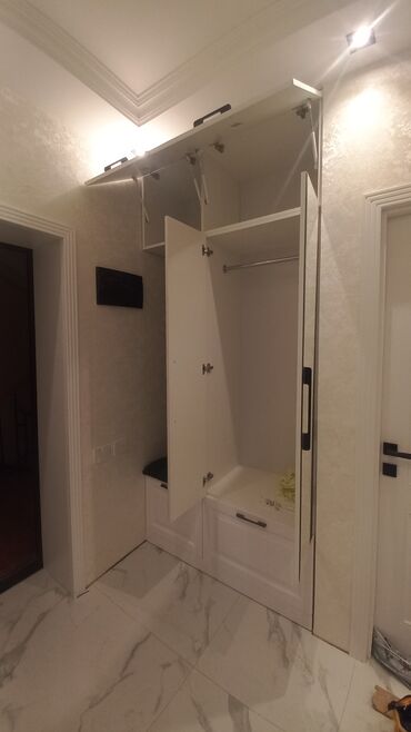 Daxili quraşdırma dolabı – dəhliz/koridor üçün - Döşəmədən tavana qədər hündürlükdə, çoxbölməli saxlama sistemi - İki sırada yerləşdirilmiş ümumilikdə 6 qapı; üst və alt bölmələr ayrıca saxlanma i...