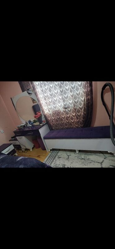 - Tualet masası: dairəvi böyük güzgü, üstü bənövşəyi, çekmecəli və rəfli hissə