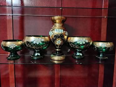 Böhöm şüşə dekor dəsti – 5 hissə Təsvir: - Rəng: zümrüd-yaşıl şüşə