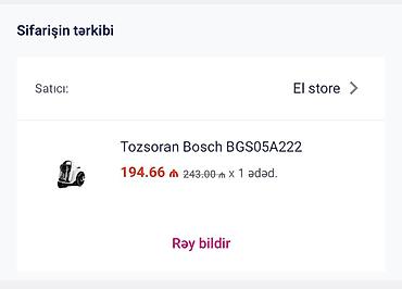200 azn alinib koce gore satiram tecili Bosch BGS05A222 tozsoran -
