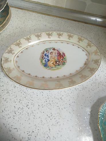Porcelain serviz boşqabları (2 ədəd)qiymət 25 azn - Material: incə porselen - Forma: dalğalı kənarlı, hər iki tərəfdə tutacaqlı oval/çəngəlvari formalı - Rəng və naxış: tünd lacivərt əsas üzərində...