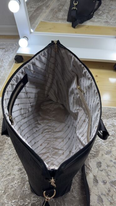 - Material: möhkəm eko–dəri tipli xarici örtük, metal fitinqlər (qızılı ton)