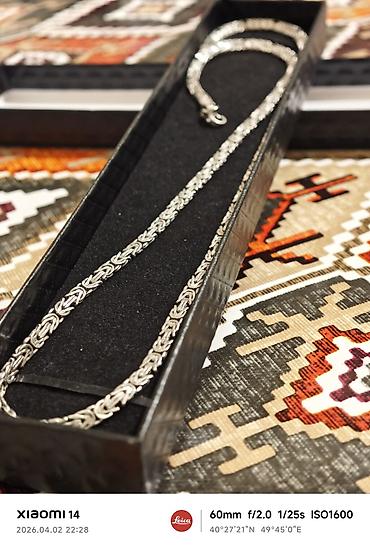 ENİDİR, TAXİLMAYİB. 585 eyyar. cəki 7.9 QR. 1700 BU QİYMƏTƏ YENİ MAL YOXDUR, 2 ƏL QİYMƏTİNƏ SATİRAM. ARTİQDİR DEYƏ SATİLİR. VERSACE FİRMASİDİR, SON QİYMƏTDİR. QALXSA QALDİRACAQAM UNİSEKSDİR, 56 SM....