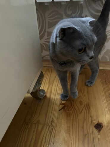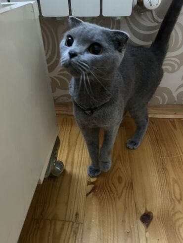 Şotlant yastı qulaq pişik - Cinsi: qısa tüklü, boz (solid grey) - Qulaqlar: yığılmış/qatlanmış tip (fold) - Göz rəngi: sarı-qızılı çalar - Xarakter xüsusiyyətləri: sakit, mehriban, qucağı sevir, e...