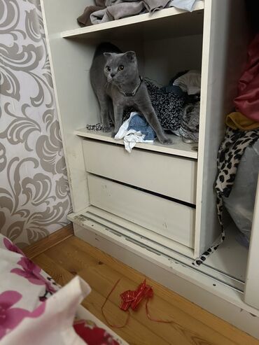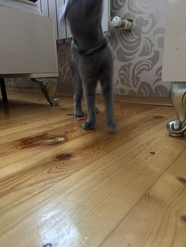 Skotiş qıvrım qulaqlı boz pişik - Cins: Scottish Fold (qıvrım qulaqlı) - Rəng: Bərk boz (blue/grey), tük örtüyü qısa və sıx - Gözlər: Parlaq sarı-qızılı - Quruluş: Yığcam bədən, yumru baş, qısa pə...