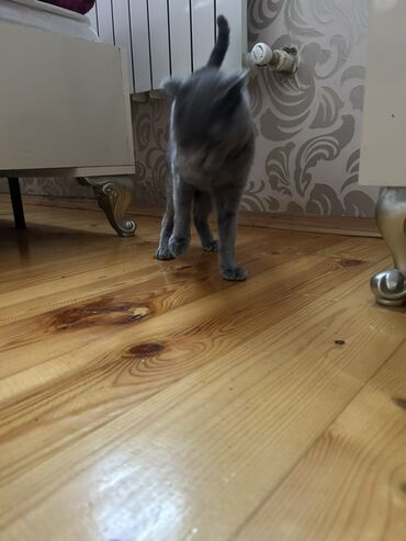 Şotland qıvraqqulaqlı (Scottish Fold) pişik - Rəng: tam boz (blue/grey), qısa və sıx tüklü - Qulaqlar: klassik qatlanmış, başa yaxın - Gözlər: iri, sarı-kehrəba rəngində - Bədən quruluşu: yığcam, ...
