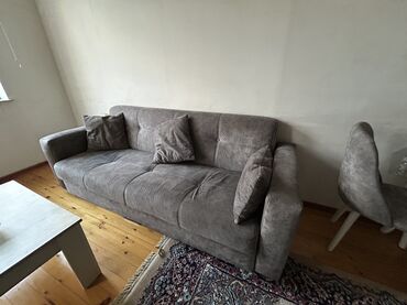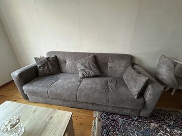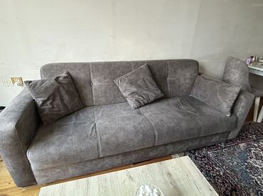 Açılan, bazalı divan, qonaq otağı və ya istirahət üçün uyğundur. Taxta qollarla tamamlanan boz rəngli parça üzlüklüdür. Rahatlıq üçün iki ədəd balışla təchiz olunub. Yataq kimi də istifadə oluna bi...