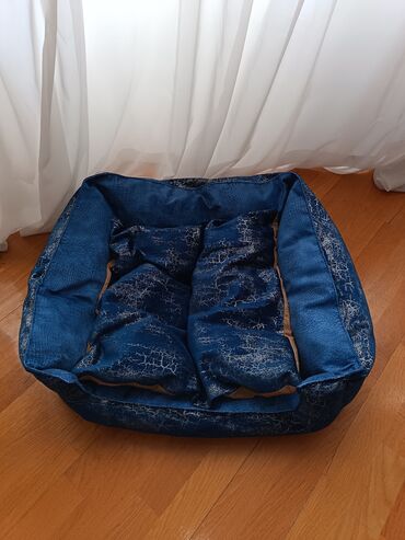 - Şəkillərdə görünən mavi rəngli, yumşaq, kənarları yüksəldilmiş kvadrat formalı pişik dincəlmə yeri (laylı, yastıqvari içlikli)