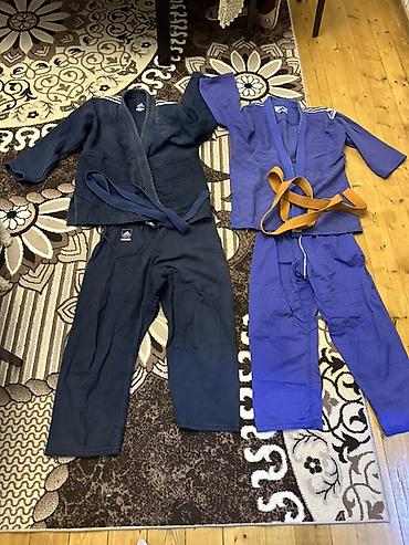 - Dəst 1: tünd mavi gi (jacket + şalvar) və eyni rəng kəmər