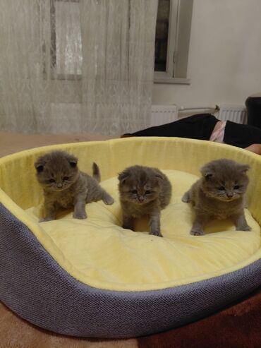 Britan tipli balaca pişiklər - Cins: Scottish Fold və British Shorthair tipli balalar (şəkillərdə həm qatlanmışqulaqlı, həm düzqulaqlı) - Rənglər: börünç (qızılı), gümüş-boz, tünd-boz naxışlı -...