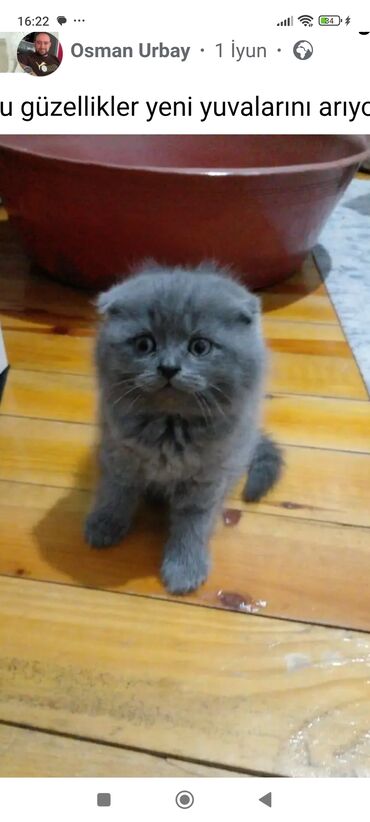 Skotiş fold erkey 2 yaş cüt üçün idial erkeydi aktivdir 👍 Ata anasi gold olub geninde gold var yeni gold bala vere biler Dişini unvandan götürüb unvanada qaytara bilerik ödenişli 👍 Cute basqa erkey...