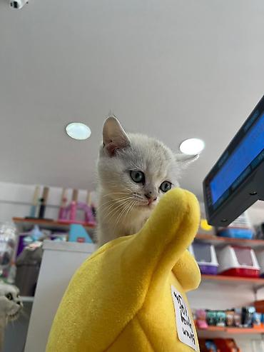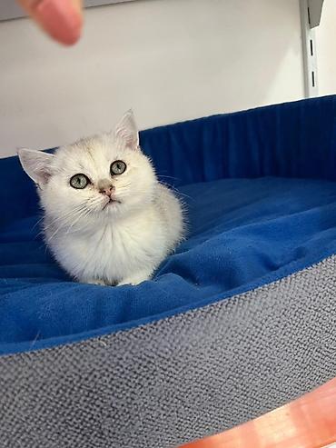 Skottish Fold balası - Cins: Scottish Fold (qulaqları yığılmış) - Rəng: gümüş tabby – ağ-alt fon üzərində tünd-boz zolaqlar - Gözlər: böyük, dəyirmi, qara konturlu - Xəz: yumşaq, sıx, qısa/orta uz...