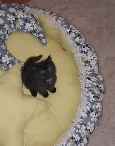 Ev pişiyi – balalarla birlikdə - Ana pişik: qara rəngli, qısa tüklü, iri ifadəli gözlər, qıvrıq/qulaqları aşağı görünüşlü. - Balalar: müxtəlif rənglərdə – tünd qara, açıq-boz və tünd-boz. Yumşaq, ...