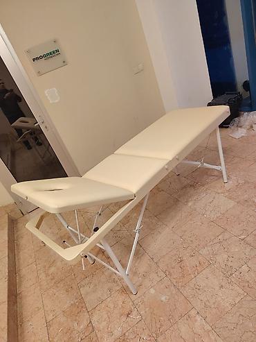 Masaj/kosmetoloji çarpayılar - Material: süni dəri (asand silinir, nəmə davamlı). - Rənglər: krem və tünd boz. - Karkas: metal konstruksiya, sabit dayaqlar. - Üst hissə: qalın süngərli yumşaq döşə...