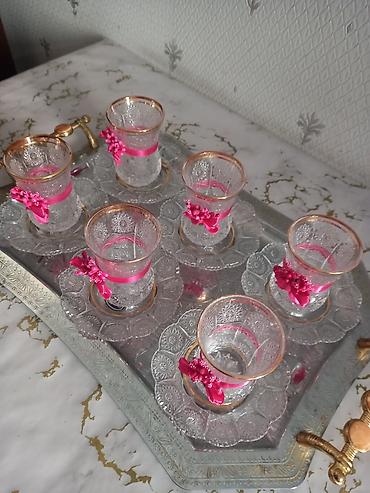 Satılır. Çay dəsti satılır, öz qutusunda, işlənməyib, yenidi, 6 çaşka+ 6 nəlbəkisi, qiyməti - 10 manat.