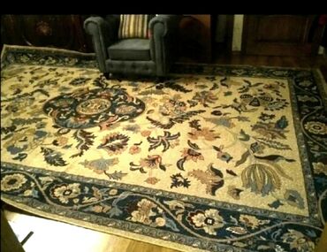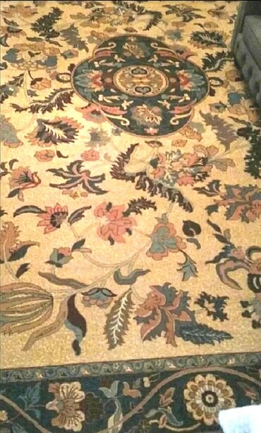 Xalça – klassik oriental naxışlı - Rəng palitrası: krem fon üzərində tünd göy, bej, qəhvəyi və tünd yaşıl tonlarda ornamentlər. - Dizayn: mərkəzdə medalion kompozisiyası, ətrafı sarmaşıqvari flora...
