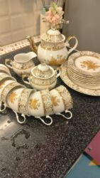 Çay dəsti, rəng - Qızılı, Kobalt, 6 nəfərlik, Çexiya