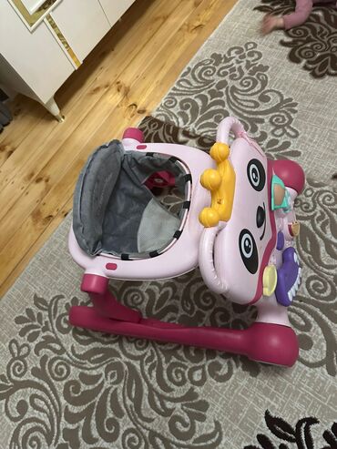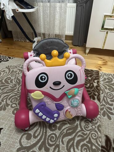 Milana…..Məhsul: 2-si 1‑də uşaq xadunkası və yürütəc - Rəng: çəhrayı/yaşıl-bənövşəyi elementlərlə - Ön panel: şən heyvan üzü, taclı sükan tutacağı, müxtəlif basma-dönmə oyun düymələri və fiqurlar ...