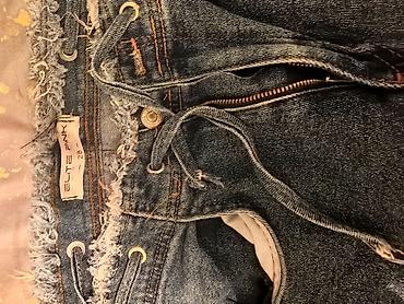 Qadın cins şalvar - Rəng: açıq mavi (light blue denim) - Kəsim: düz/regular fit, orta bel - Ölçü: S–M - Dizayn: cırıqlar və yırtıq effektləri, bəzi hissələrdə daş detallar - Bağlanma: düymə və ferm...