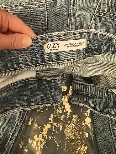 GIZY Denim cins şalvar - Brend: GIZY Denim - Ölçü: EUR 40 / USA 8 / MEX 30 (etiketdə göstərilib) - İstehsal: Türkiyə - Rəng: Klassik orta-mavi denim - Model: Yırtıqlı/ripped dizayn, geniş formalı ...