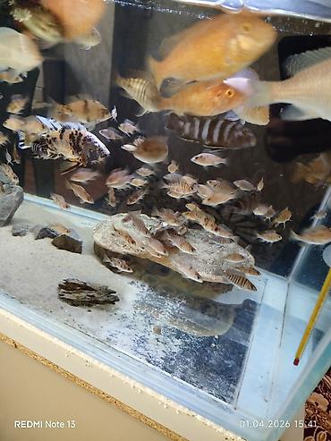 - Növ: Malawi/Tanganika qrupundan müxtəlif siklid balaları (şeritli və xallı rəng variasiyaları, qızılı və tünd tonlar).