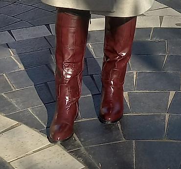 Bordo çəkmə. Bir dəfə geyinilib 90 azn almışam 2 ay əvvəl. çox keyfiyyətli yumşaq materialı var. 40 razmerdir