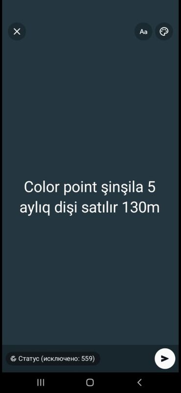 3 dənə erkey balalar idi. İkisi satıldı. Bir bu şirin qalıb. Rəngli gözdü. Öz pişiyimin balasıdır. 25 sentyabr doğulub. Tam sağlam oynayan pişikdir. Ata silver şınşıla ana skotiş foldur. Təmiz ci...
