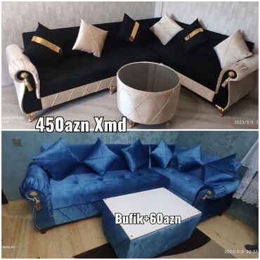 Si̇fari̇şle hazirlanir divan 199❌189 manat rəng seçimi var ölçü uzunluq 2m10sm açılan, bazali keyfiyyətli türkiye nabuk parçalari və 22"lik qupka sıxlığı ilə hazırlanır yastıq cütü 15 azn şeh...