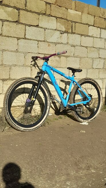 - Çərçivə: sərt hardtail, alüminium görünüşlü, mavi rəng