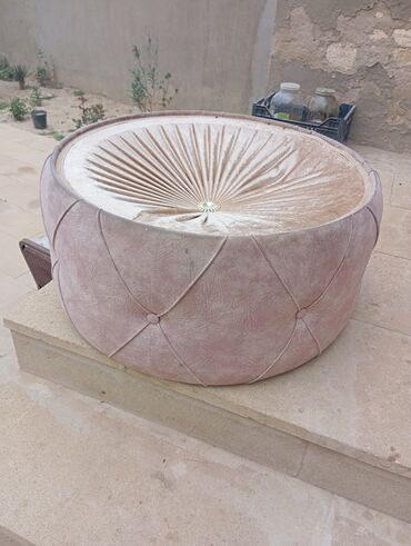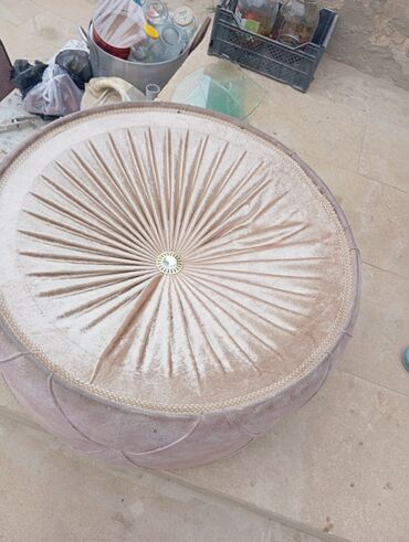 İşlənmiş, Pufik masa, Vеlur parça, rəng - Süd rəngi, Kredit yoxdur, Çatdırılma yoxdur