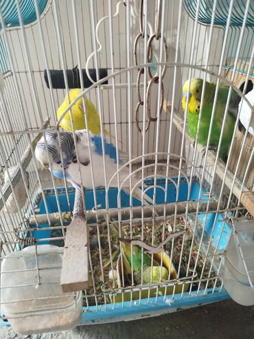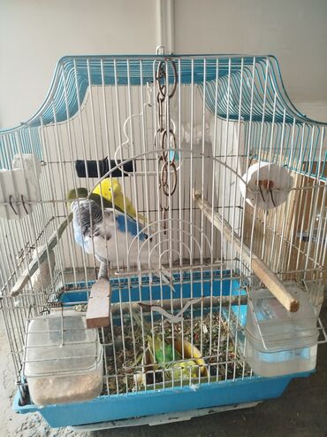 Quş üçün qəfəs İçərisində parakeet cinsi 4 ədəd quş var 2 dişi 2 erkək