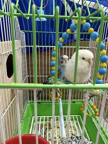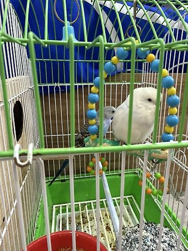 - 2 ədəd dalğalı tutuquşu (birisi ağ rəngli, digəri mavi-boz zolaqlı) birlikdə.