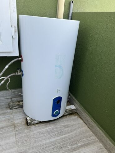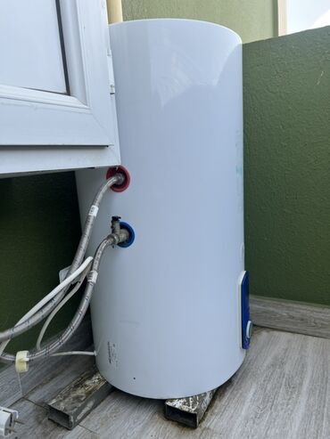 Ariston brendinin ağ rəngli silindrik elektrikli su qızdırıcısı.100 l.Hal hazırda işlək vəziyyətdə heç bir problemi yoxdur yalnız vatsapla əlaqə saxlayın
