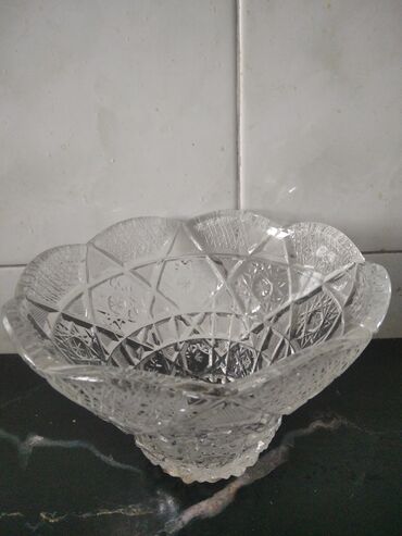 1) Şüşə/kristal meyvə qabı – dərin, səkkizguşəli kəsim naxışlı, işığı gözəl qıran klassik dizayn. Salat, şirniyyat və meyvə üçün uyğundur.