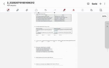 - Sənəd başlıq və səhifə naviqasiyası olan PDF formatındadır; səhifə miqyası göstəricisi (68%) görünür.