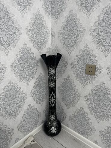 Dekorativ mərməri xatırladan naxışlarla bəzədilmiş hündür döşəmə vazası.