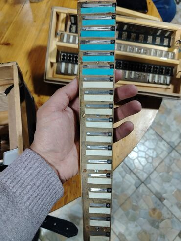 Məhsul: “Атлас” marka akkordeon Xüsusiyyətlər: - Korpus: yaşıl perlamutr örtük - Klaviatura: sağ tərəfdə pianino tipli klavişlər - Bas bloku: sol tərəfdə çoxsaylı bas düymələri - Hava körpüsü: kla...