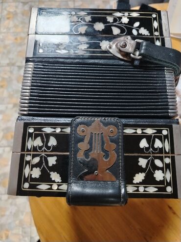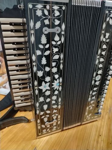 Məhsul: Klaviaturalı akkordeon Təsvir: - Korpus: qara rəngdə, dekorativ naxışlı panellər - Klaviatura: sağ tərəfdə pianino tipli 25 düymə/klaviş sırası - Bas/akkompaniment: sol tərəfdə sıra ilə dü...