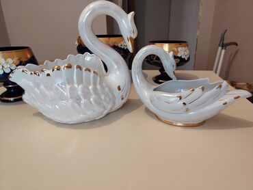 Zərif dizaynlı dekorativ ayaqlı qab - Material: yüksək keyfiyyətli porcelan - Rəng: ağ korpus, kənar və ornamentlərdə parlaq qızılı tonlar - Bəzək: əl işi kimi görünən relyefli çiçək motivləri və i...