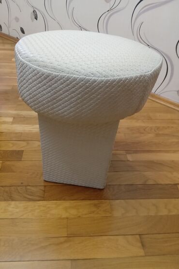 Zərif dizaynlı yumru puf-oturacaq - Forma: silindrik, yumru - Parça: yumşaq samit/material (məxmərəoxşar faktura), toxunuşda rahat - Rəng: açıq bej/krem tonları – interyerlərə asan uyğunlaşır - Üs...